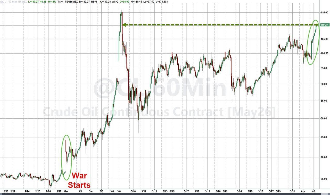 The result of all this was to send oil prices back near the highs since war started...