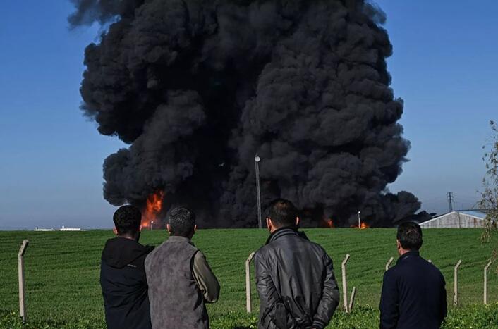 Aftermath of Wednesday drone strike on oil warehouse in the Kani Qirzhala area on the outskirts of Erbil, northern Iraq:
