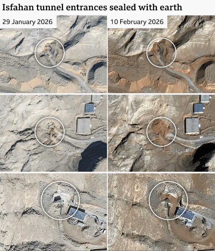 Satellite imagery from late 2025 into February 2026 shows ongoing fortification – strengthened tunnel entrances with concrete, soil/rock cover, security perimeters, and additional barriers. Iran has declared it for advanced centrifuge assembly, but analysts assess it could host covert enrichment, HEU storage, or a hardened fallback plant.