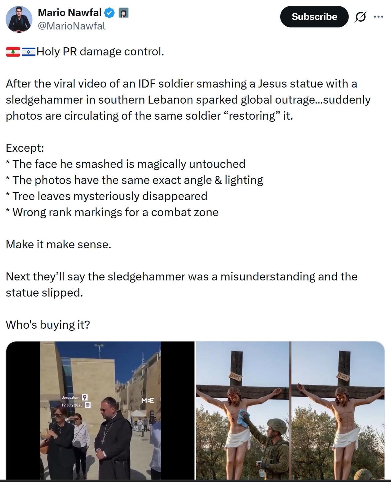 Israeli Soldiers In Lebanon Who Sledgehammered Statue Of Jesus Arrested As Bibi Does Damage Control