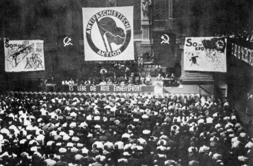 The Unity Congress of Antifa at the Philharmonic Opera House, organized by Germany’s Communist Party in response to Benito Mussolini’s rise in the 1920s, in Berlin on July 10, 1932. Public Domain
