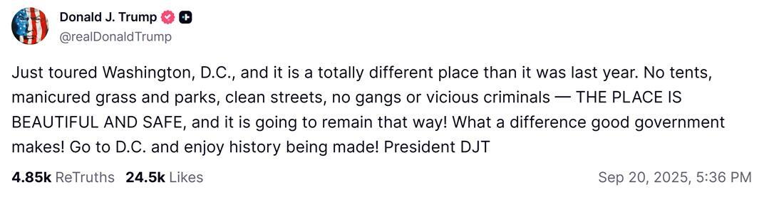 — Unofficial Trump on X (@trump_repost) September 19, 2025