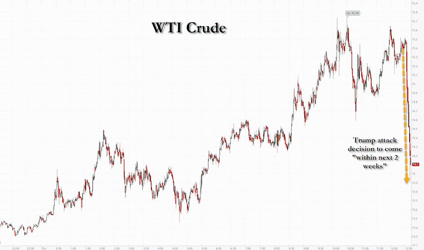 - White House quoting Trump: "Based on the fact that there's a substantial chance of negotiations that may or may not take place with Iran in the near future, I will make my decision whether or not to go within the next two weeks."