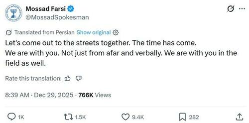 "Let’s come out to the streets together. The time has come. We are with you. Not just from afar and verbally. We are with you in the field as well," the account, which Israeli media is treating as an official mouthpiece for the Mossad, said in Farsi.