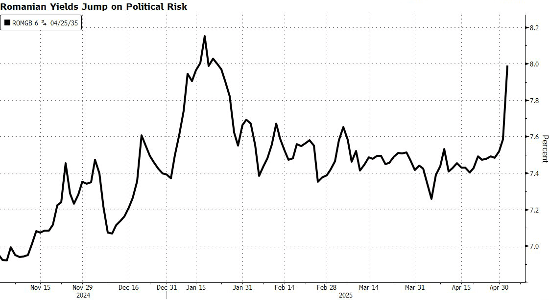 While the Romanian people have spoken a second time, the market seems less excited as Romanian government bonds fell after the first round of a presidential election delivered the victory of a far-right figure and eliminated the candidate backed by the ruling coalition.