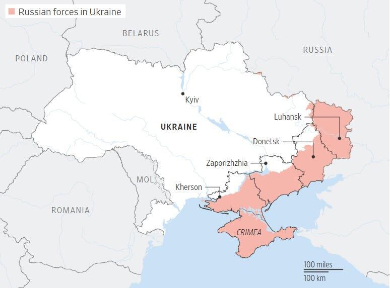 Russia would then control Donetsk, Luhansk, as well as the Crimea peninsula, which it seized in 2014 and wants recognized as sovereign Russian territory.