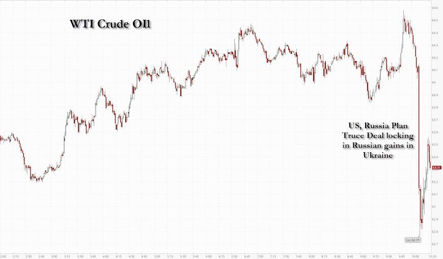 As we detailed earlier, Bloomberg is reporting, according to people familiar with the matter, that Washington and Moscow are aiming to reach a deal to halt the war in Ukraine that would lock in Russia’s occupation of territory seized during its military invasion.