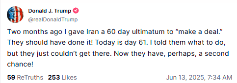 And more from Trump on Friday morning, as the smoke still smolders over Tehran and Iranian nuclear energy sites in other parts of the country: