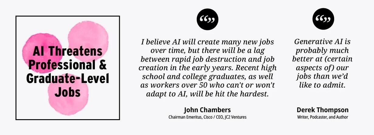 Of course, AI will impact the job market in other ways as well. Professional and knowledge-worker classes that previously felt insulated are now beginning to feel anxiety around job security.