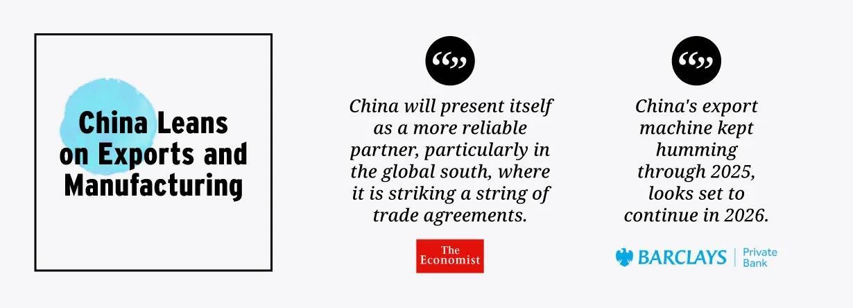 Facing deflation, a property crisis, and slowing domestic growth, China is pivoting to manufacturing and export dominance. The country is positioning itself as a more reliable partner, particularly in the Global South, striking trade agreements as the U.S. retreats from multilateralism.