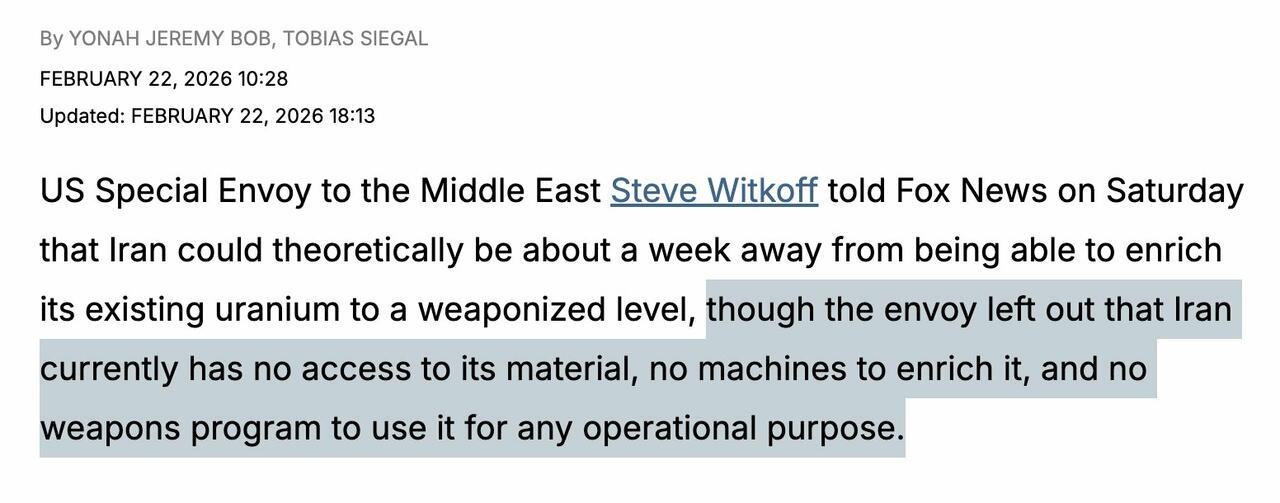 Even the Jerusalem Post contradicted Witkoff's claim...