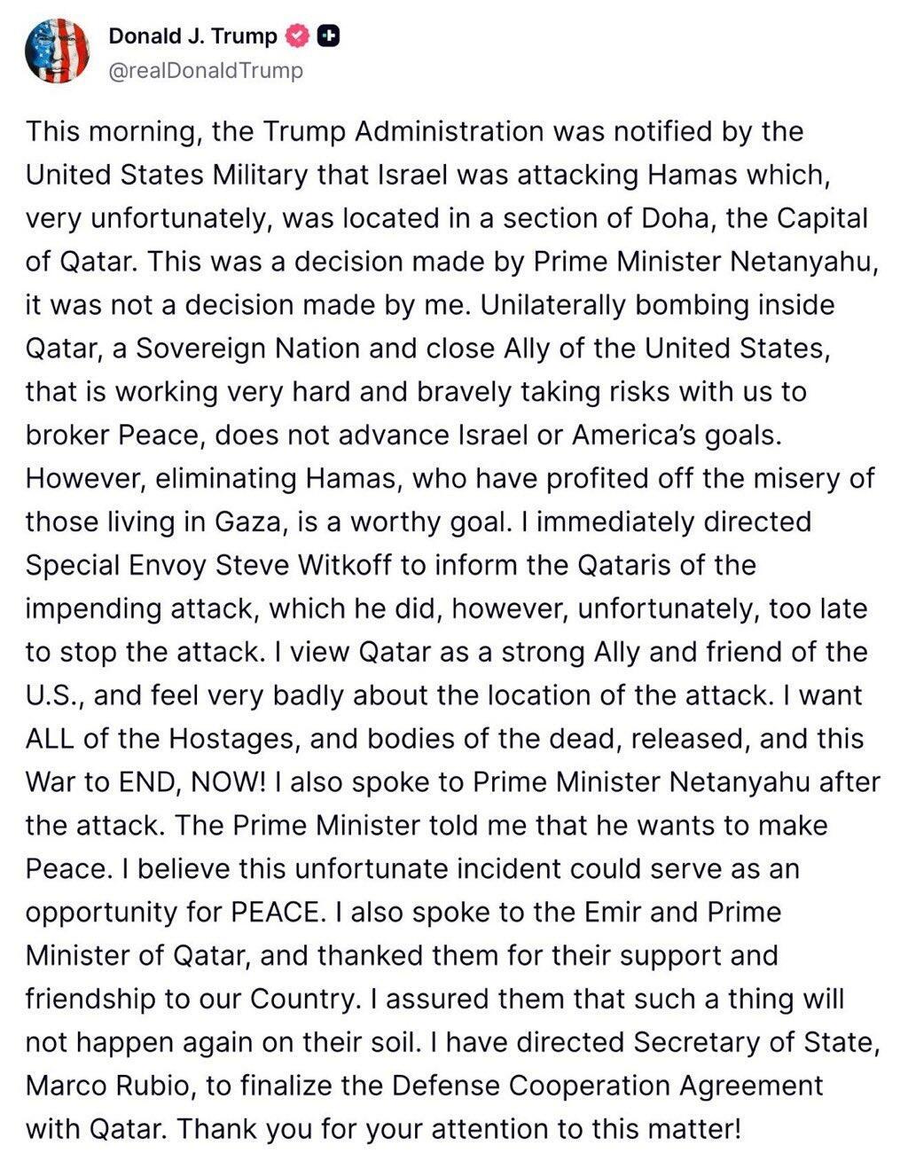 The White House has said it notified Qatar of the impending attack on the building where Hamas leaders were staying in Doha, but Qatari officials have pushed back against this, saying that the government only was officially notified some ten minutes after the attack already took place.