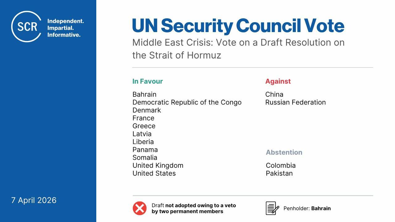 Russia, China Veto UN Res Authorizing Military Force To Reopen Hormuz Strait