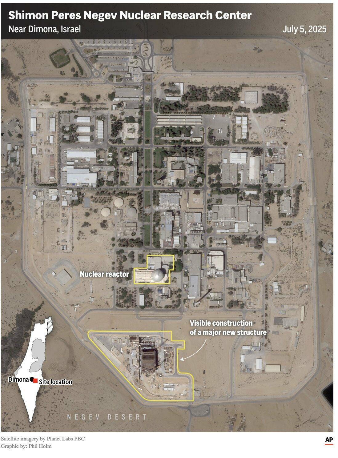 Satellite images show construction work on a major new facility at the nuclear site near Dimona, Israel, the location of Israel’s secret nuclear weapons program, The Associated Press reported on Wednesday.