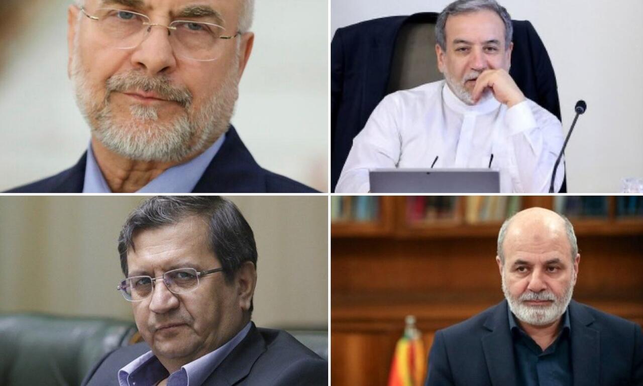 Below: Ghalibaf (Speaker of Parliament) - Araghchi (Foreign Minister) - Ahmadian (Secretary of the Defense Council) - Hemmati (Central Bank Governor)