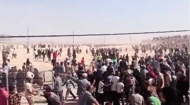Footage purportedly shows thousands of Palestinians overrunning one of the aid distribution sites in southern Gaza's Rafah a short while ago.