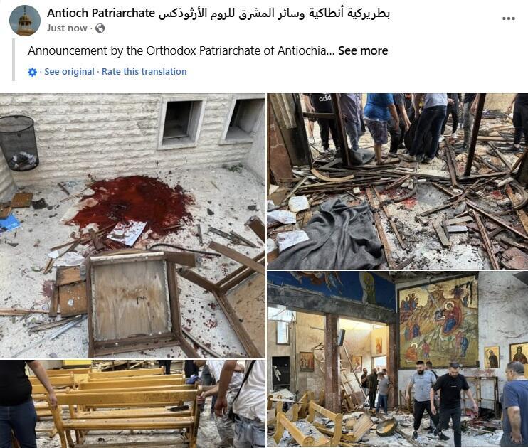 On Sunday, a suicide bomber entered St. Elias Antiochian Orthodox Church and detonated while a service was happening, killing at least fifteen - according to early reports (alongside possibly a second attacker) - and leaving many more wounded. The church is now a bloody mess, and personnel at the scene have struggled to identify body parts.