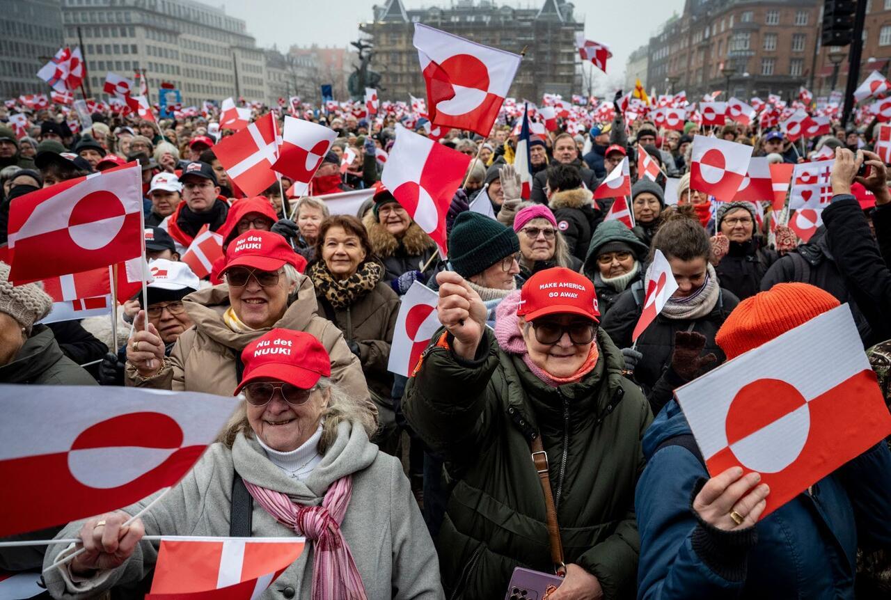 Meanwhile in Nuuk, the capital of Greenland, thousands of people, including the territory's prime minister, Jens-Frederik Nielsen, waved Greenlandic flags, chanted slogans and sang traditional Inuit songs under light rain.