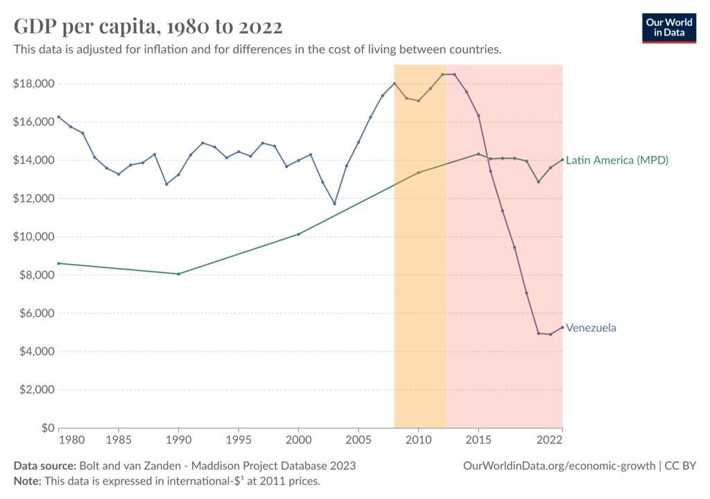 Many Western observers, from Senator Bernie Sanders to director Oliver Stone, saw this as a sign that socialism works. But the reality is that Venezuela’s oil-fueled boom had only managed to bring incomes back to 1970s levels. Moreover, careful econometric analyses comparing Venezuela’s performance to that of other similarly situated countries, found that Venezuela consistently under-performed.