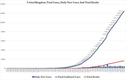 Update (1110ET): The UK's Department of Health and Social Care has just released daily figures on the coronavirus outbreak. They reported 449 new deaths, bringing the UK's death toll to 16,509 as of 6pm London Time on Sunday, as officials scramble to account for more deaths in non-hospital settings (especially nursing homes).