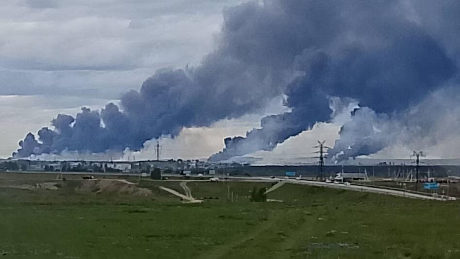 Below: Ukraine on Wednesday released additional footage of strikes on four Russian air fields, including what could be two A-50 aircraft in Ivanovo...