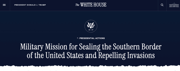 Days after NBC reported that the Trump administration had considered launching drone strikes on drug cartels in Mexico, President Trump issued a memorandum Friday night to the heads of four federal departments, expanding the U.S. military's role in securing the southern border in accordance with Executive Order 14167 (Clarifying the Military's Role in Protecting the Territorial Integrity of the United States) and Proclamation 10886 (Declaring a National Emergency at the Southern Border of the United States). The move aligns with a broader strategic theme known as hemispheric defense.