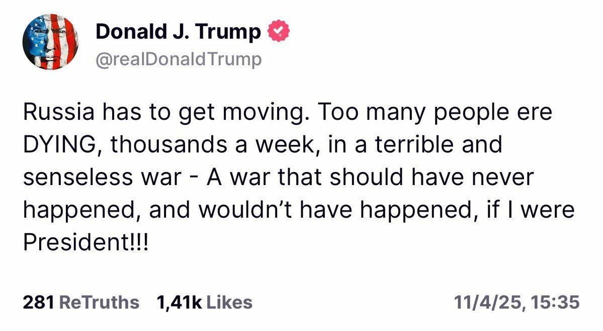 "Russia has to get moving. Too many people [are] DYING, thousands a week," Trump wrote in a fresh post on Truth Social.