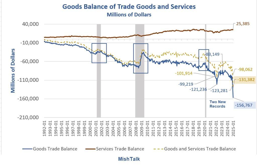 The Census Department reports two new records trade deficits in January.