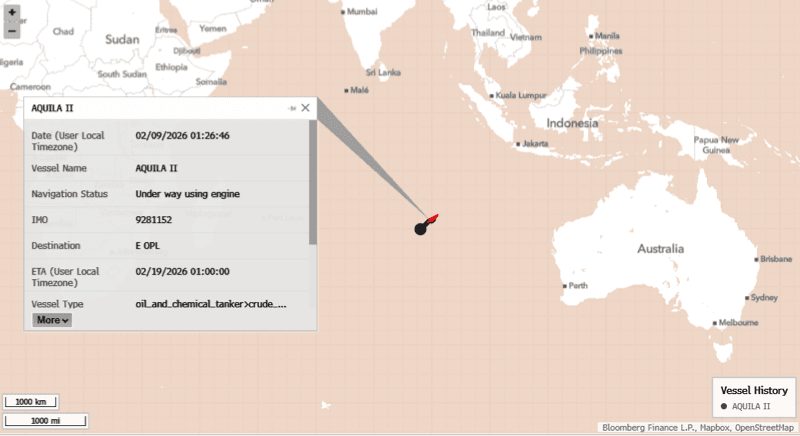 Reuters reports the Aquila II departed Venezuela's waters in early January carrying roughly 700,000 barrels of heavy crude bound for China. Shipping data did not clearly identify the vessel's flag or registration.