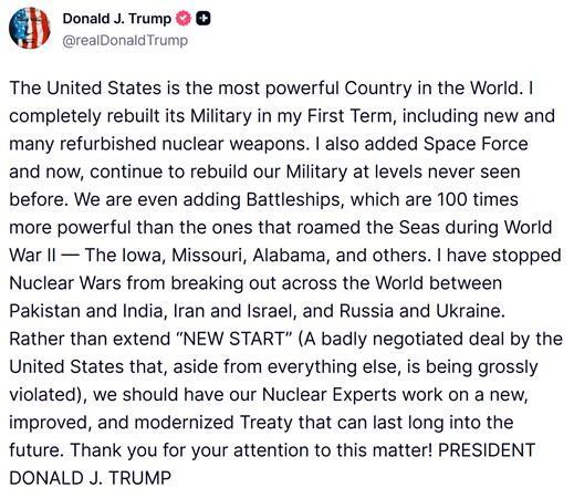 This has been a longtime complaint of Trump's, which goes all the way back to his first administration, when similar complaints about the existent framework for arms control were issued.