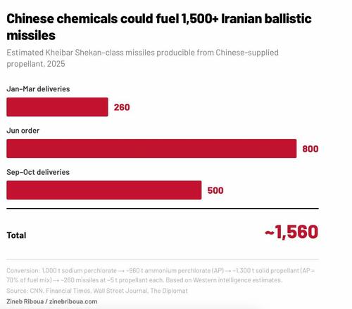 The urgency is real. Israeli defense planners had tracked how Chinese components, machine tools, and technical guidance were accelerating Iranian production lines, and their projections pointed toward catastrophe: 5,000 missiles by 2027, potentially 10,000 by the end of the decade. Every warhead carried a Chinese fingerprint, from solid-fuel propellant chemistry to the precision guidance systems that turned inaccurate rockets into weapons capable of striking downtown Abu Dhabi. Beijing was not merely trading with Tehran.