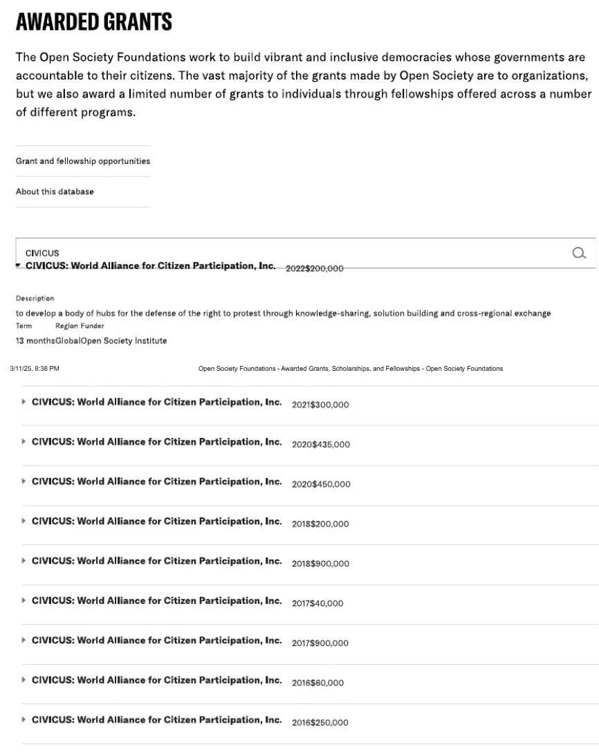 CIVICUS is a nonprofit that received more than $3.5 million in donations from George Soros’s Open Society Foundations from 2016 to 2021, according to a Headline USA review of a grants database.