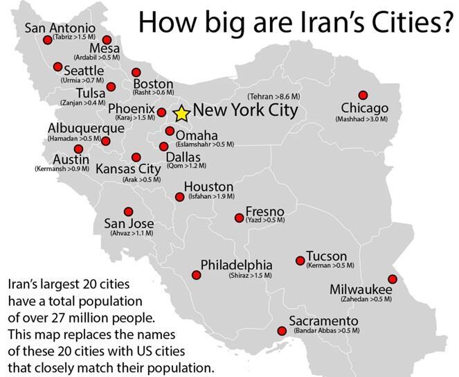 The Iranian capital of Tehran has a population of approaching 10 million, while the greater cosmopolitan area has some 16 million people.