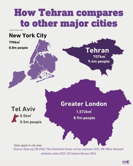 TEHRAN city size: Comparable to New York City.