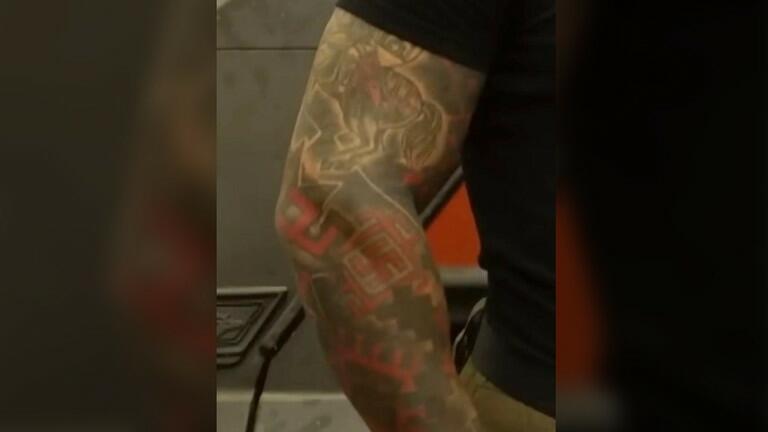 The footage, released Thursday, blurred out the swastika tattoo of one of the main military trainers interviewed, but failed to do so in the video’s YouTube thumbnail. Comments were turned off, with a note attached in the YouTube description which reads: "A tattoo of an offensive symbol has been blurred in this video." Watch (officer with tattoo starts at :16 mark)