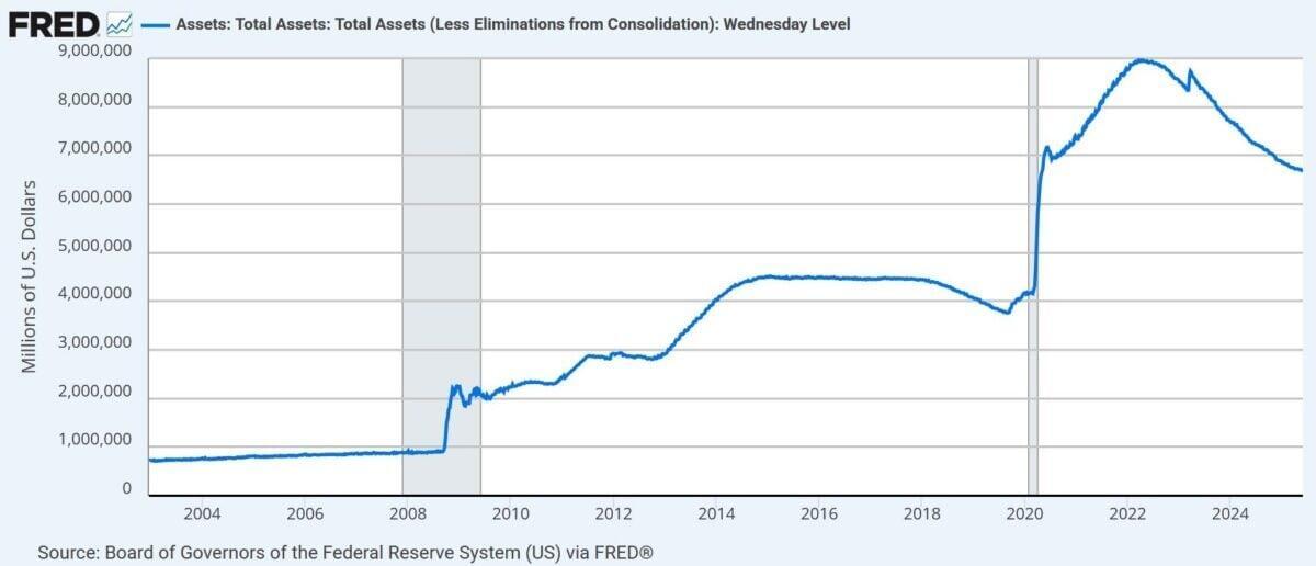 They have reduced their balance sheet from $9 trillion to $6.7 trillion. The last time they tried to reduce their balance sheet in 2019, the repo market spasmed and they used the Covid cover to drastically print more fiat. Trump is mocking Powell and demanding interest rate cuts. Powell is pretending to be independent, but he is praying for some kind of crisis to again set the printing presses to hyper-speed. I’m sure the ruling oligarchs are hatching a new crisis to expand their wealth, power, and control, while further impoverishing and enslaving the plebs.