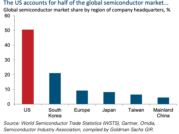 But not all is lost: the U.S. is well ahead on the semiconductors.
