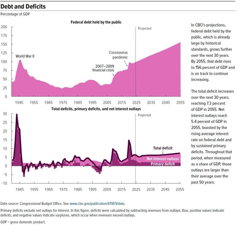 Figure 2. Figure from page 10 of The Long-Term Budget Outlook 2025 to 2055, published in March 2025 by the CBO.