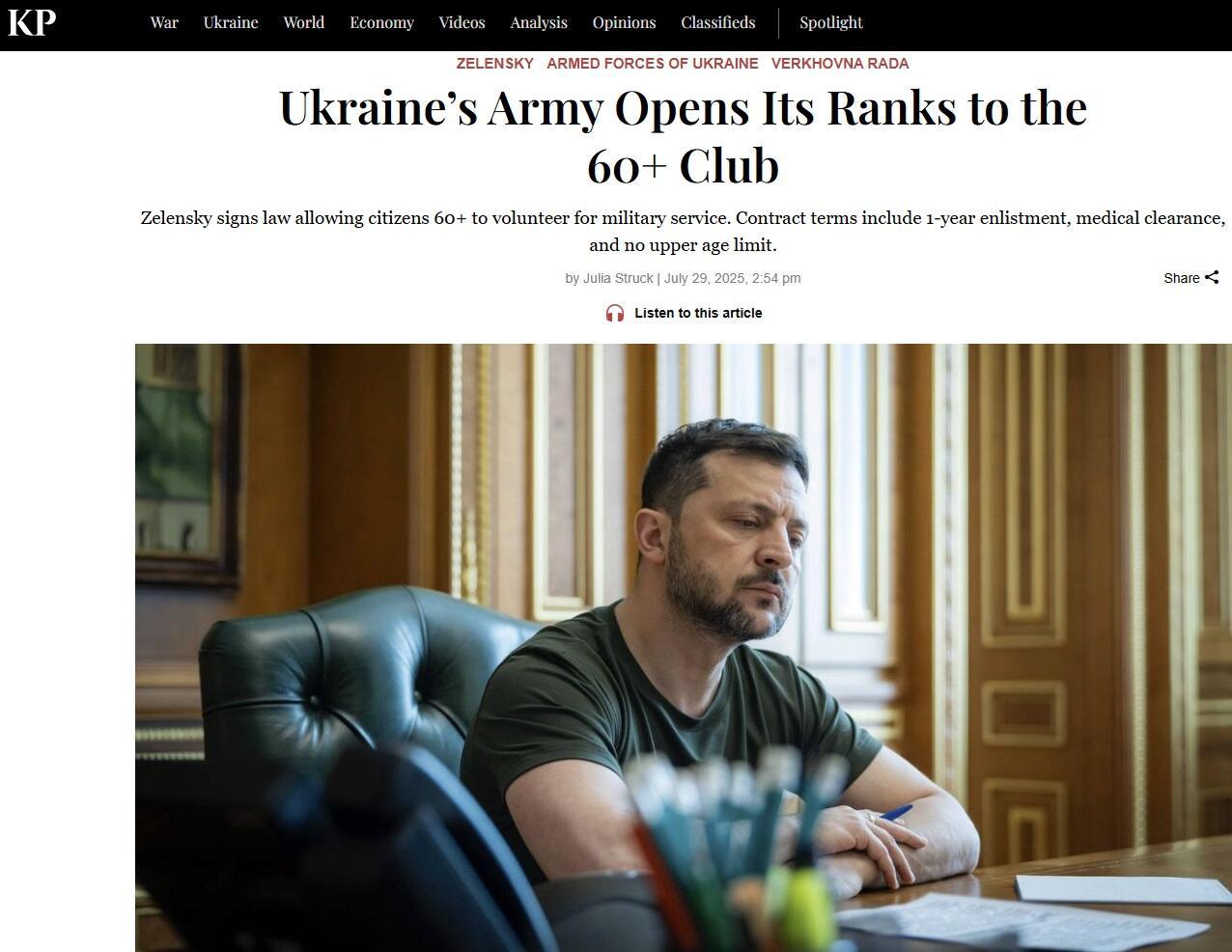 Under the updated Law “On Military Duty and Military Service,” citizens aged 60+ can now enlist under contract during martial law, provided they are deemed medically fit by a military commission and have written consent from a unit commander.
