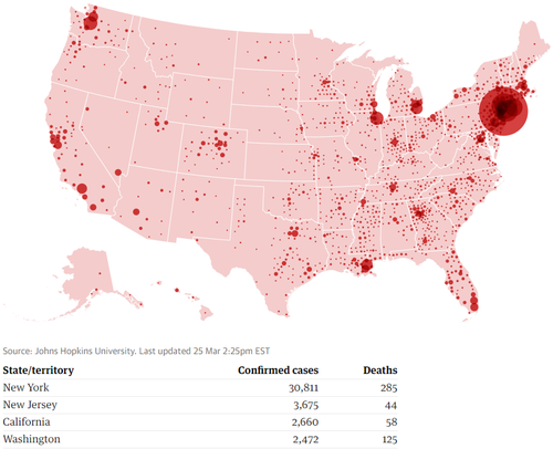 The US on Wednesday reached above 60,000 confirmed cases and is on track to overtake Italy and possibly China in terms of total numbers.