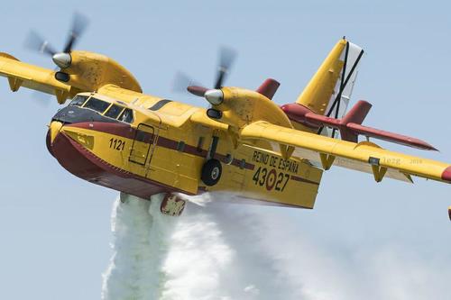 Each CL-415 has a range of 1,518 miles with a 1,620-gallon tank that can be mixed with chemicals. The plane is amphibious and can refill on a body of water.