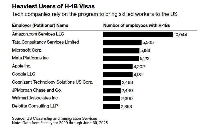 The tech sector will be in focus after Trump’s move to slap a $100,000 application fee on new H1-B visas. The fee is set to push more IT-services work offshore, or spur big price hikes for end-users.
