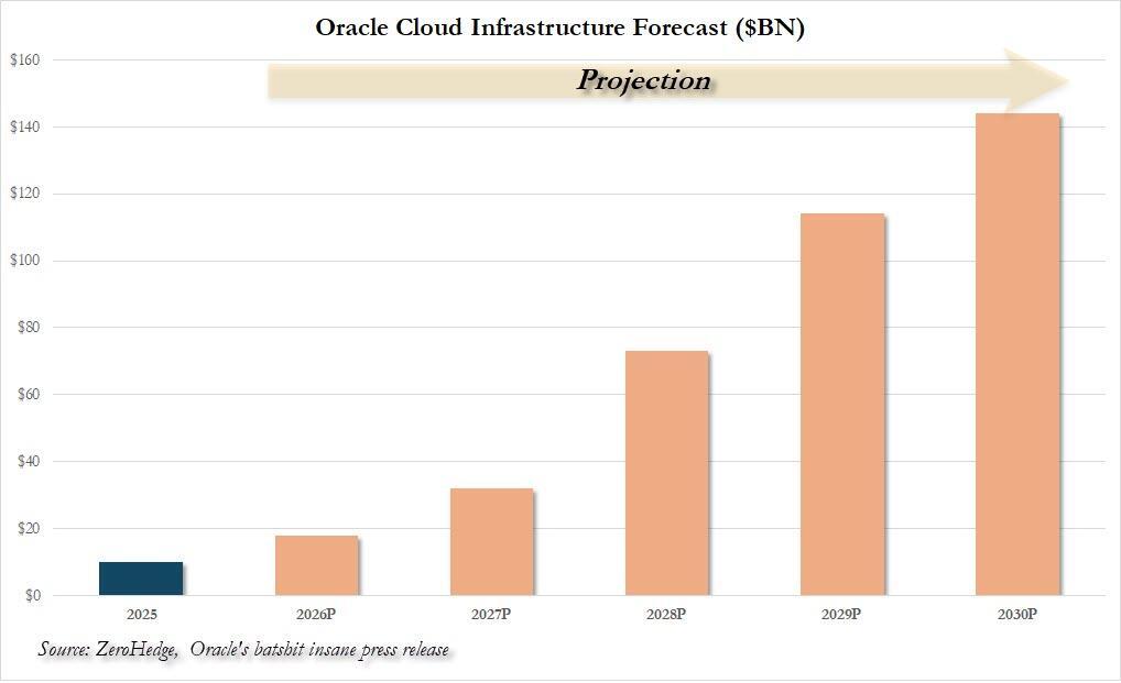 - Oracle shares jumped 30% premarket after providing a blowout outlook for its cloud business. The company is on track to add about $190 billion in market value today. BBG