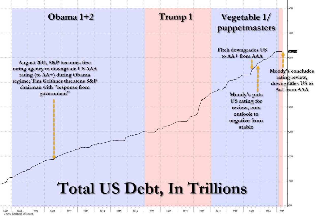 Global markets are slower after Friday's Moody's downgrade of the US credit rating to Aa1 (vs AAA prev), which was attributed to "increased interest payments on debt, rising entitlement spending, and relatively low revenue generation. While markets have reacted this AM, Goldman notes that Moody’s has had a negative rating outlook since November 2023, and has lagged the other two major rating agencies, S&P and Fitch, in the downgrade to AA+. Bessent comments yesterday are also helping price action, with the Treasury Sec noting that Liberation Day tariffs may be reimposed if countries do not negotiate "in good faith" before the 90 day pause expires on July 9th.