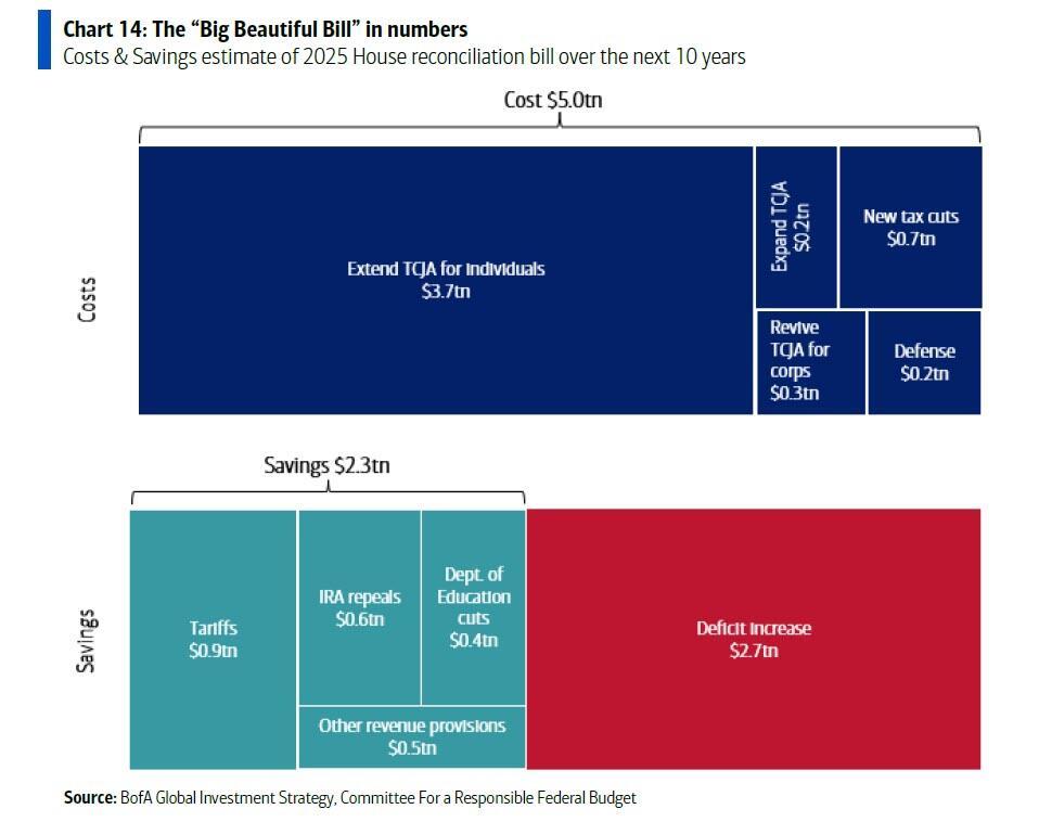 It‘s likely that fiscal developments in Washington will take centre stage with the House expected to vote on its reconciliation package this week just as Moody's removed the US's last remaining triple-A rating late on Friday night. As our economists discussed last week (see "Tax bill details suggest still-elevated deficits in the near term'), though the specific components of additional tax cuts on top of the TCJA extension differed from what they had previously outlined (see "US outlook: Tariff-struck"), the JCT score of the Ways and Means mark-up was largely in line with our top-line deficit assumptions. Assuming House Republicans are able to resolve their outstanding policy disagreements and vote on the tax package this week, the Senate will then start to mark up the bill, where even more policy disagreements await. One thing stands out though, and that is that at this stage there are no signs of any serious deficit restraint.