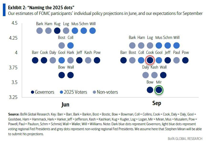 - Lisa Cook is set to take part in the FOMC meeting today and tomorrow after an appeals court blocked Donald Trump from firing the Fed governor. So is Stephen Miran, who was confirmed in a 48-47 Senate vote. BBG
