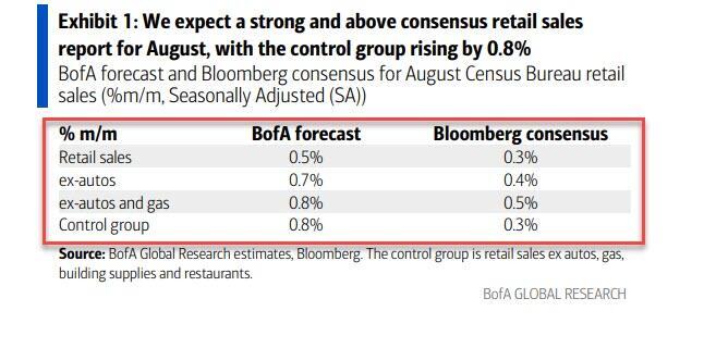- 8:30 am: Aug Retail Sales Ex Auto MoM, est. 0.4%, prior 0.3%