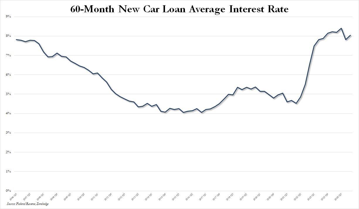 ... what was more surprising, and what may explain the sudden collapse in non-revolving credit which is mostly auto loans, is that 6 months after the Fed cut rates, the average 60-month new car loan saw rates unexpectedly pick up to 8.04% from 7.82%, something which is usually not seen in times of declining rates unless there is a systemic threat with the underlying asset that serves as collateral, in this case cars.