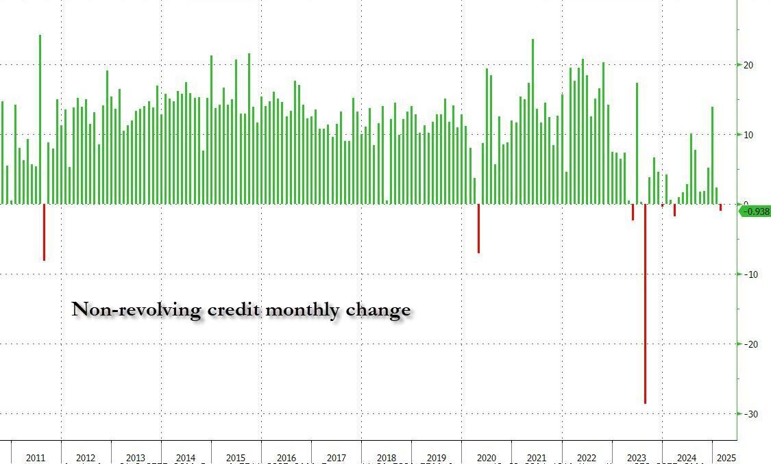 ... what was more remarkable is that 'old faithful' nonrevolving credit, which for the past decade has increased by an average of $13bn every month like clockwork come rain or shine, just posted its 2nd decline in the past year, a surprising result...