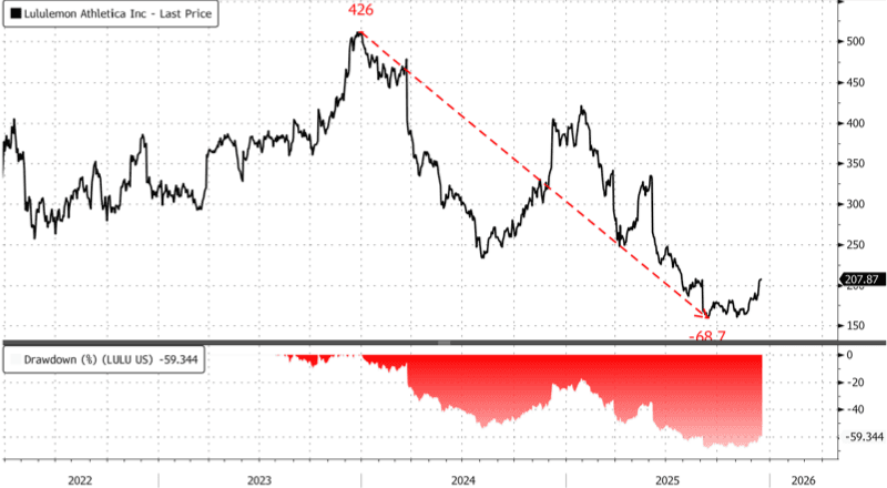 The WSJ report made no mention of when Elliott's traders were buying shares of Lululemon. But with the stock down roughly 68% from its December 2023 peak, it's reasonable to think the position was built over the past several months. Shares are also at Covid lows...